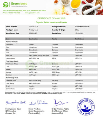 COA Organic Reishi mushroom Powder