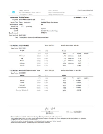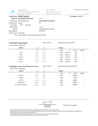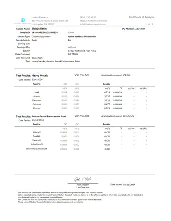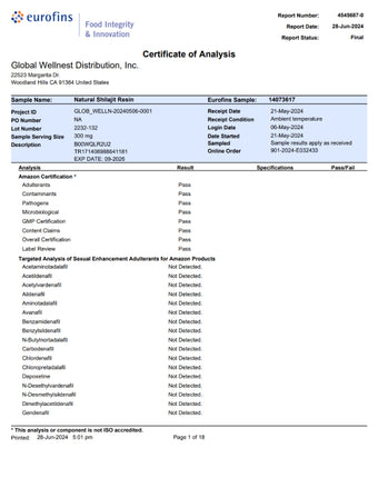 Certificate of Analysis Natural Shilajit Resin