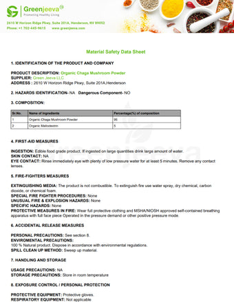 Material safety data sheet organic Chaga mushroom powder