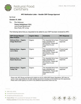 Material safety data sheet organic Turkey Tail mushroom powder