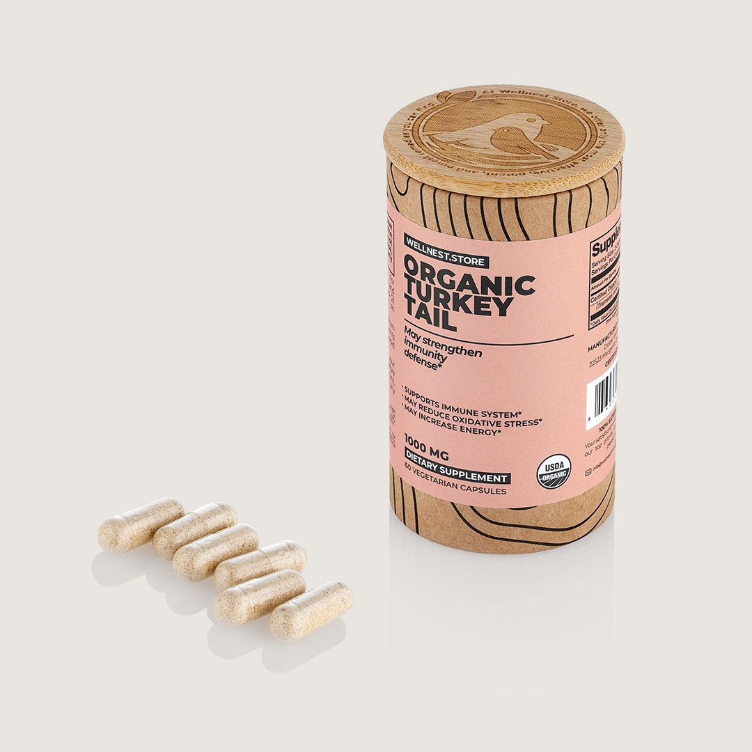 Turkey Tail Organic Mushroom Capsules - Immune Support Supplement; Promotes Growth of Beneficial Bacteria in The Gut + Boosts Energy, Fights Fatigue