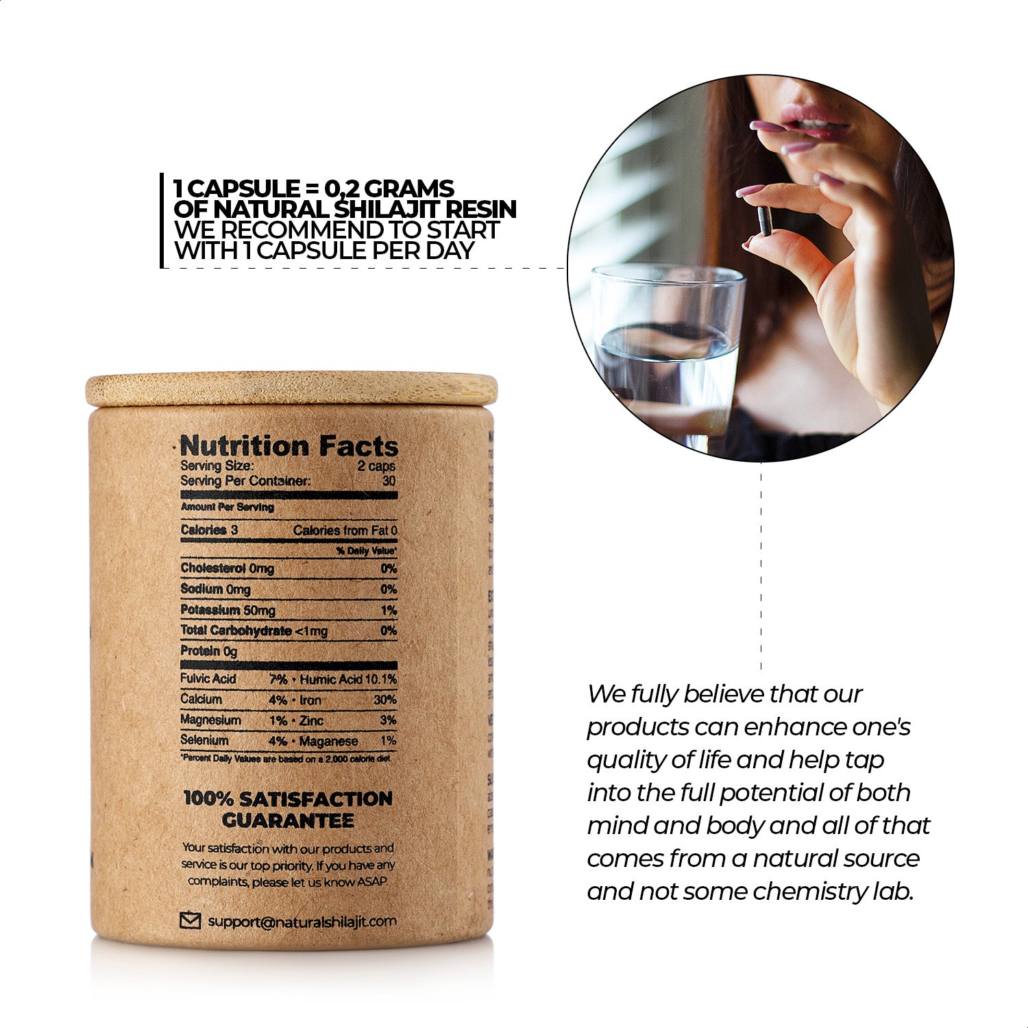 Discover the power of nature with our NATURAL SHILAJIT Capsules, specially crafted for both men and women. Each capsule is packed with pure shilajit, a potent resin known for its rich content.